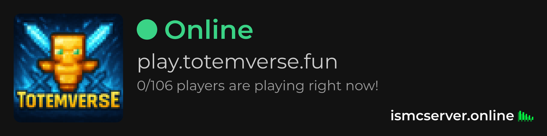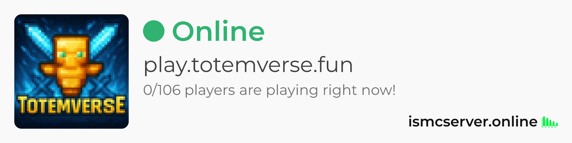 Dark theme: https://ismcserver.online/play.totemverse.fun/widget?dark=true