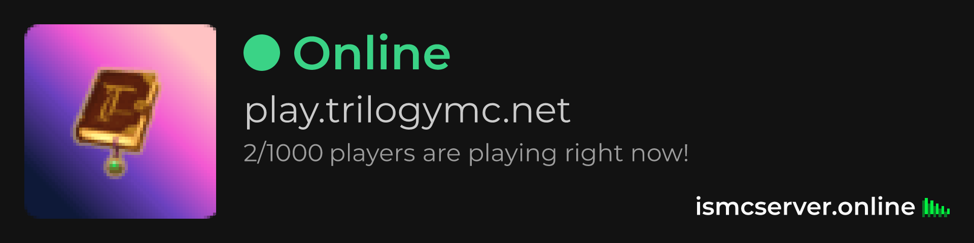 Dark Rounded image: https://ismcserver.online/play.trilogymc.net/widget?dark&rounded