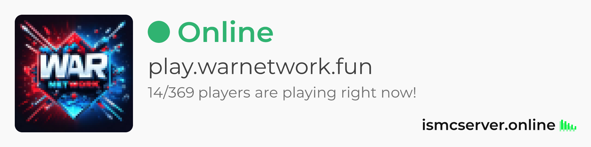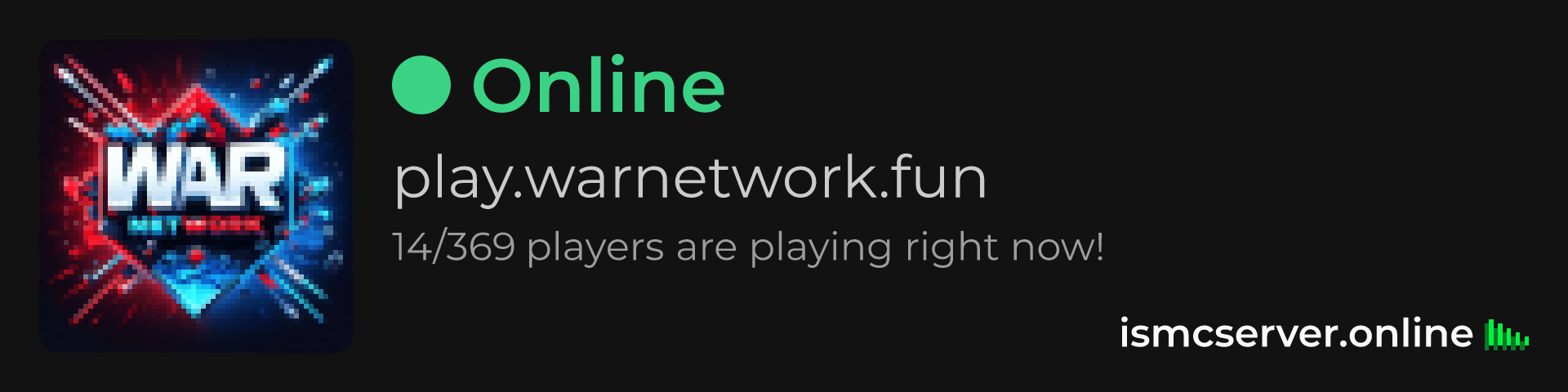 Dark theme: https://ismcserver.online/play.warnetwork.fun/widget?dark=true