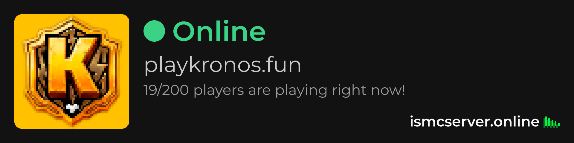 Dark theme: https://ismcserver.online/playkronos.fun/widget?dark=true