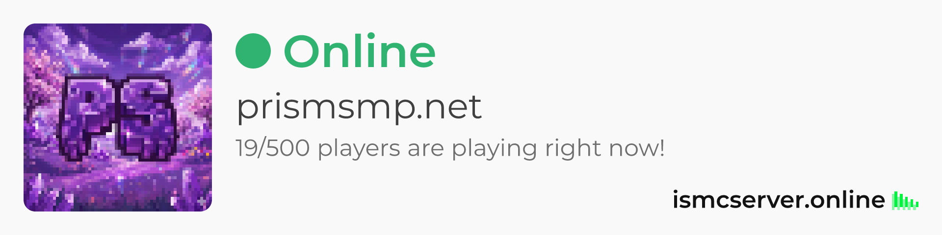 Dark theme: https://ismcserver.online/prismsmp.net/widget?dark=true