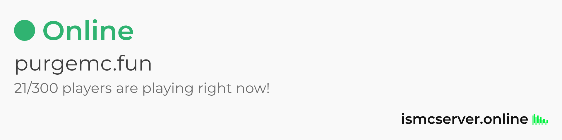Dark theme: https://ismcserver.online/purgemc.fun/widget?dark=true