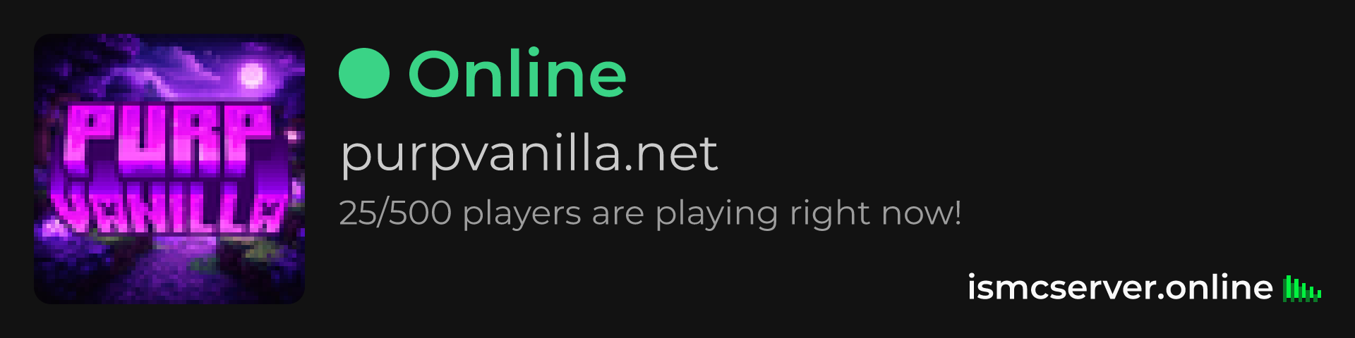 Dark Rounded image: https://ismcserver.online/purpvanilla.net/widget?dark&rounded