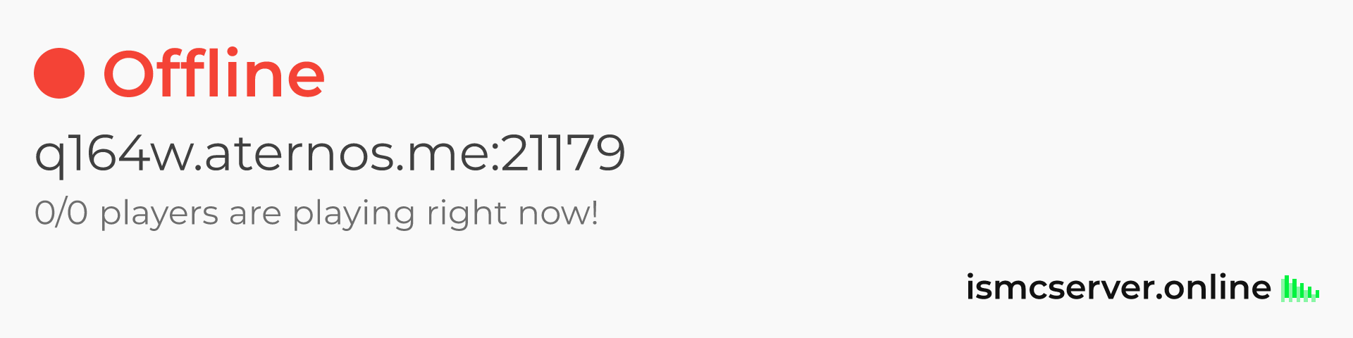Dark Rounded image: https://ismcserver.online/q164w.aternos.me:21179/widget?dark&rounded
