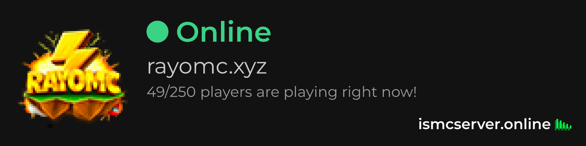 Dark Rounded image: https://ismcserver.online/rayomc.xyz/widget?dark&rounded