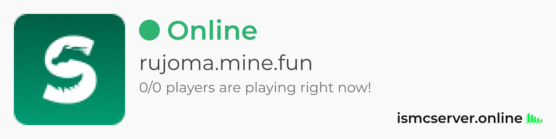 Dark Rounded image: https://ismcserver.online/rujoma.mine.fun/widget?dark&rounded