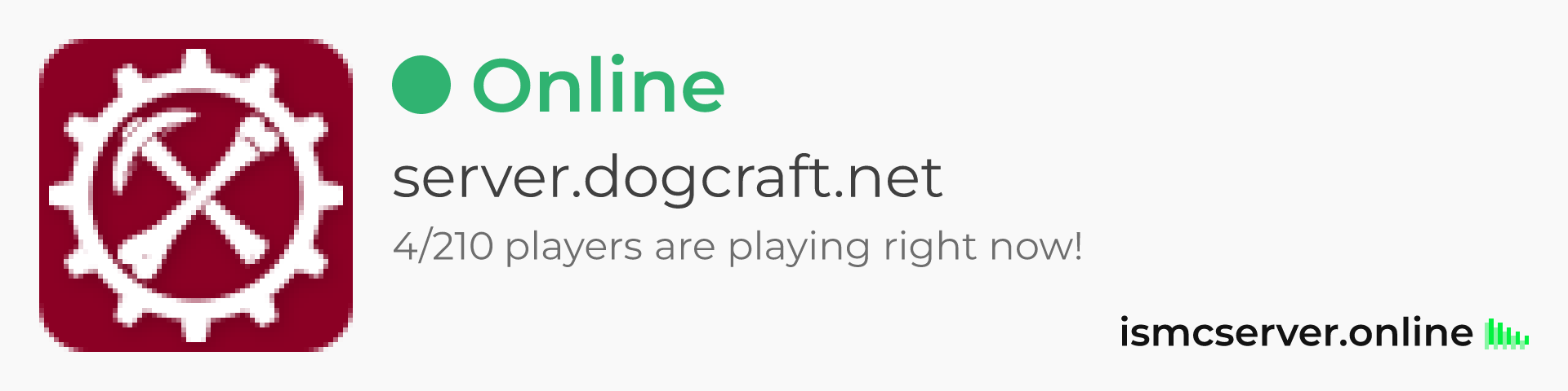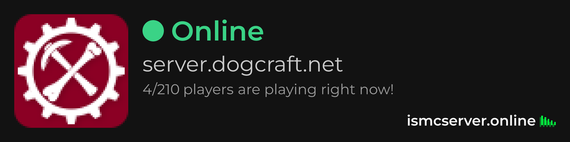Dark theme: https://ismcserver.online/server.dogcraft.net/widget?dark=true