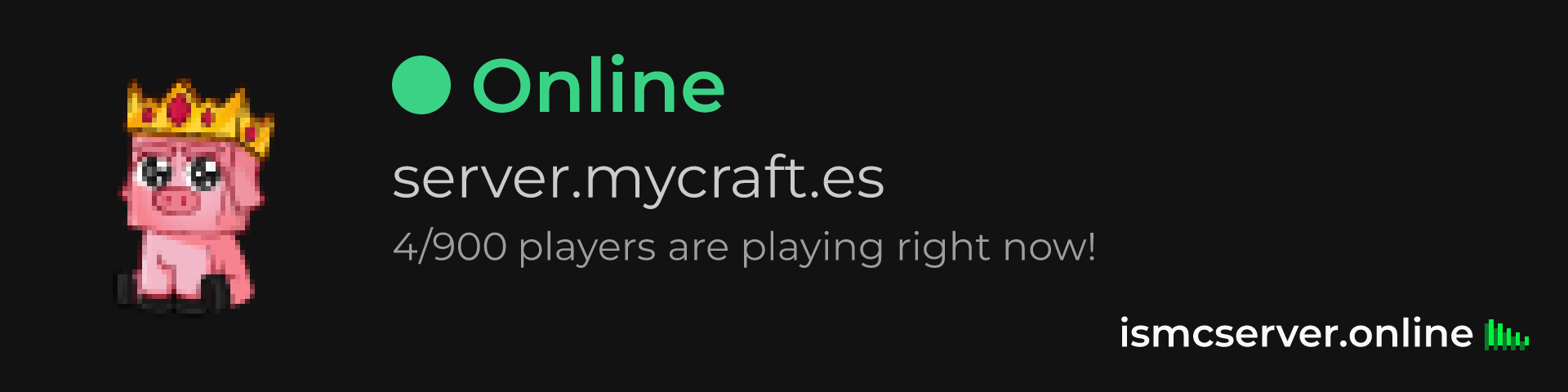 Dark Rounded image: https://ismcserver.online/server.mycraft.es/widget?dark&rounded