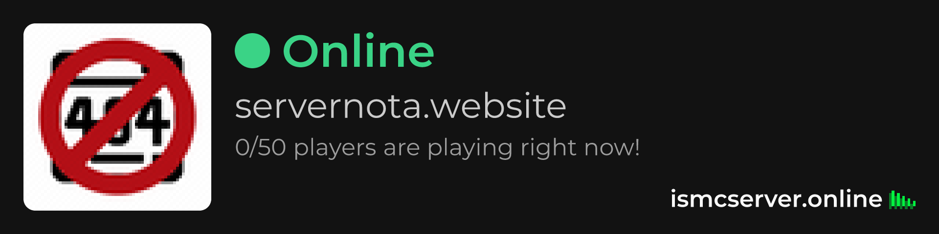 Dark Rounded image: https://ismcserver.online/servernota.website/widget?dark&rounded