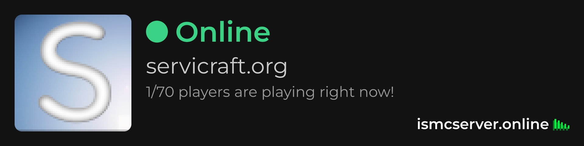 Dark Rounded image: https://ismcserver.online/servicraft.org/widget?dark&rounded