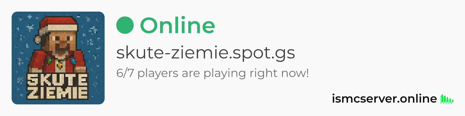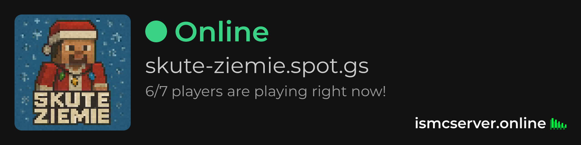 Dark theme: https://ismcserver.online/skute-ziemie.spot.gs/widget?dark=true