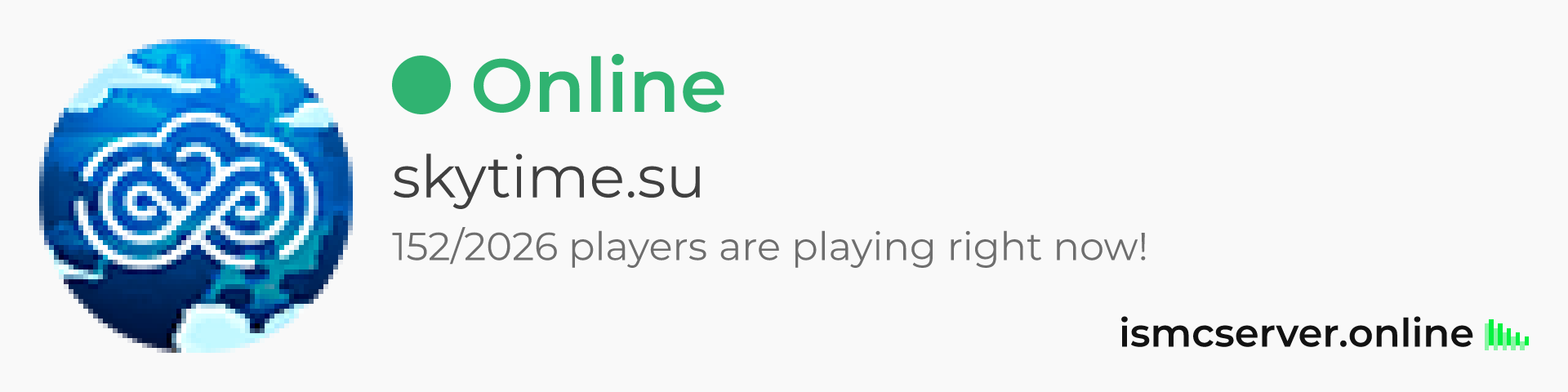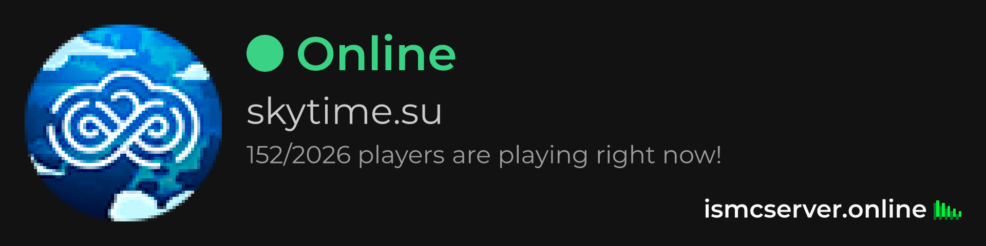 Dark theme: https://ismcserver.online/skytime.su/widget?dark=true