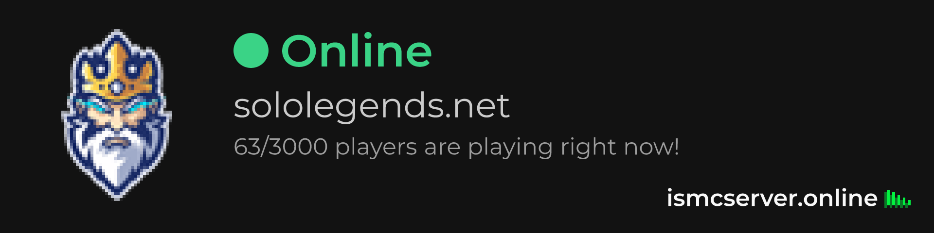 Dark Rounded image: https://ismcserver.online/sololegends.net/widget?dark&rounded