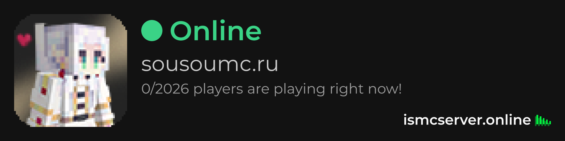 Dark Rounded image: https://ismcserver.online/sousoumc.ru/widget?dark&rounded
