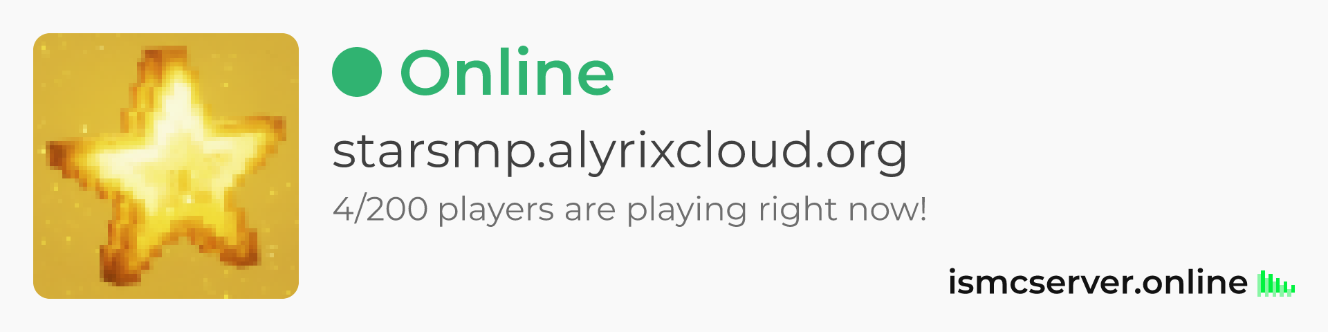 Widgets are accessible for everyone, without needing any token. Simply add /widget at the end of server's url. Like this: https://ismcserver.online/starsmp.alyrixcloud.org/widget.