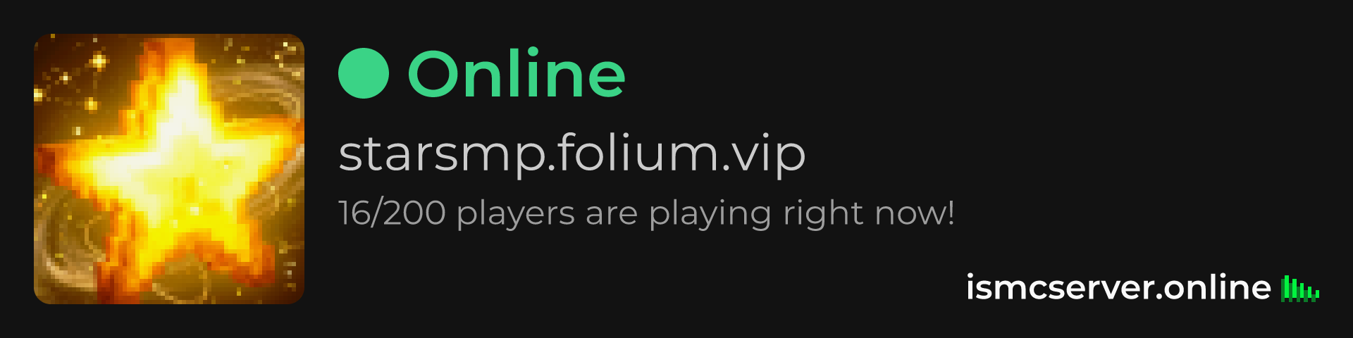 Dark theme: https://ismcserver.online/starsmp.folium.vip/widget?dark=true