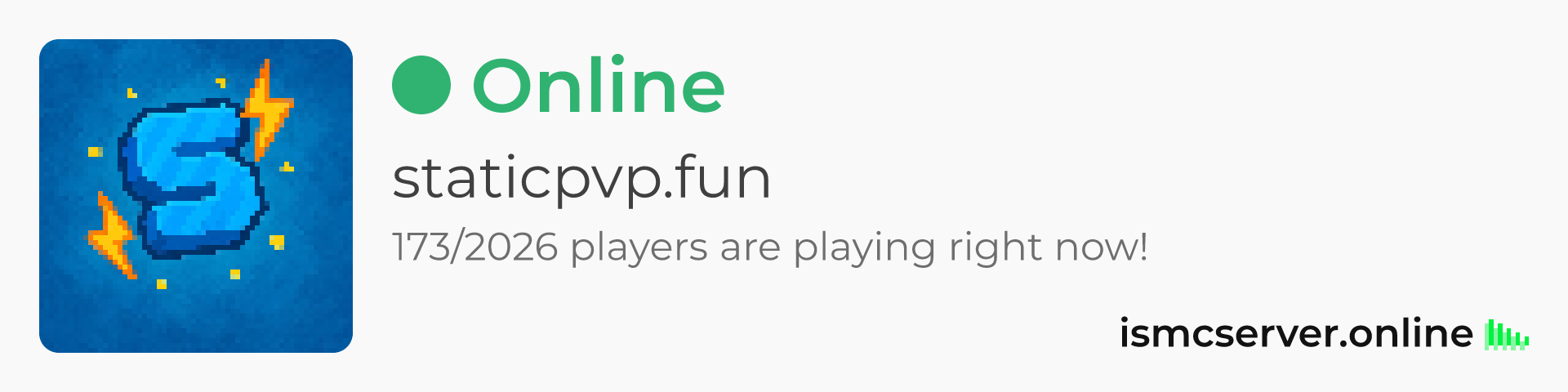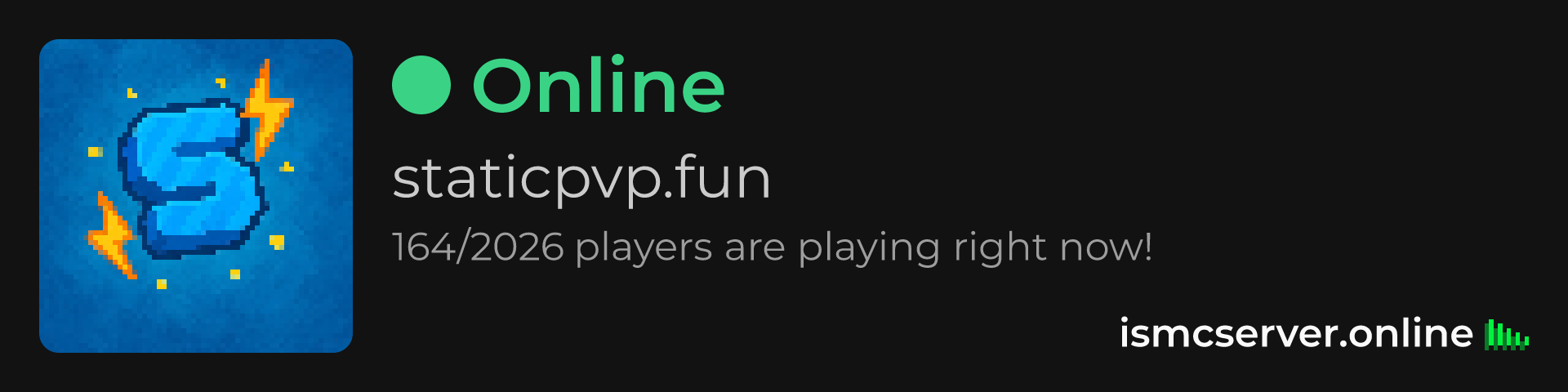 Dark theme: https://ismcserver.online/staticpvp.fun/widget?dark=true