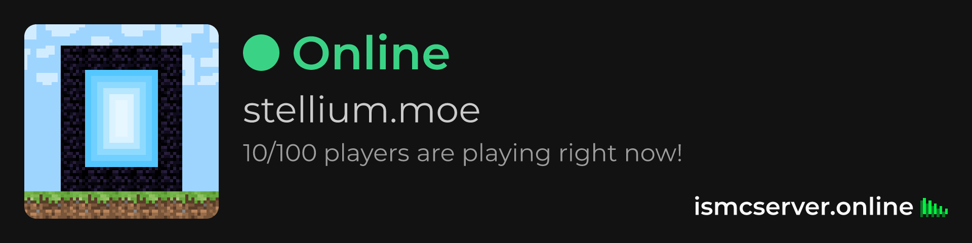 Dark Rounded image: https://ismcserver.online/stellium.moe/widget?dark&rounded