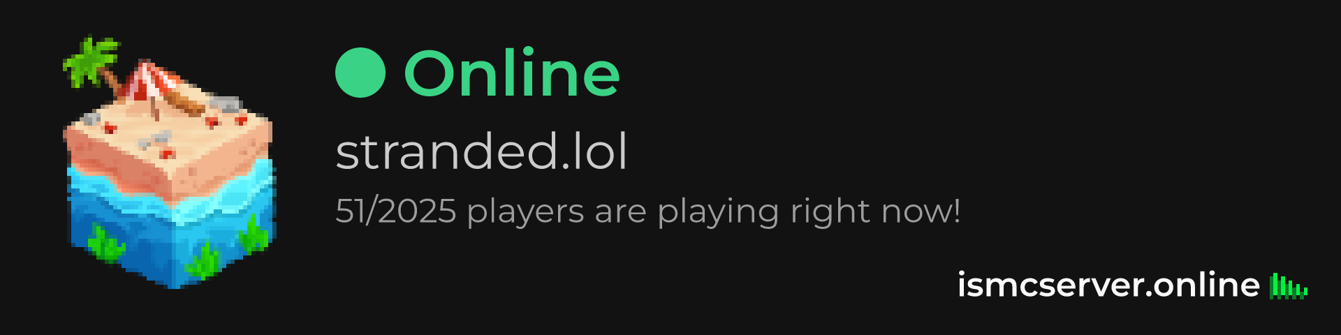 Dark Rounded image: https://ismcserver.online/stranded.lol/widget?dark&rounded