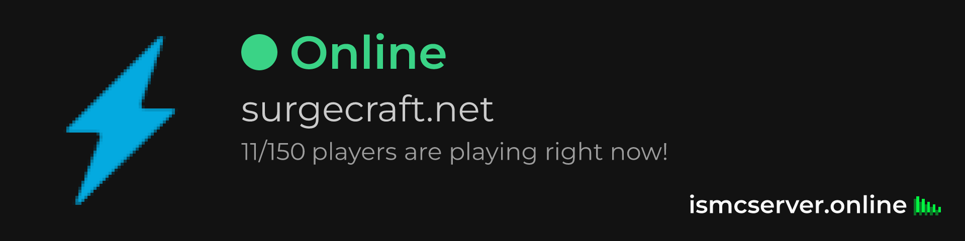 Dark Rounded image: https://ismcserver.online/surgecraft.net/widget?dark&rounded