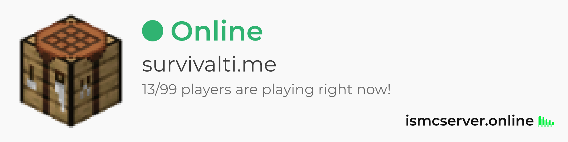 Dark theme: https://ismcserver.online/survivalti.me/widget?dark=true