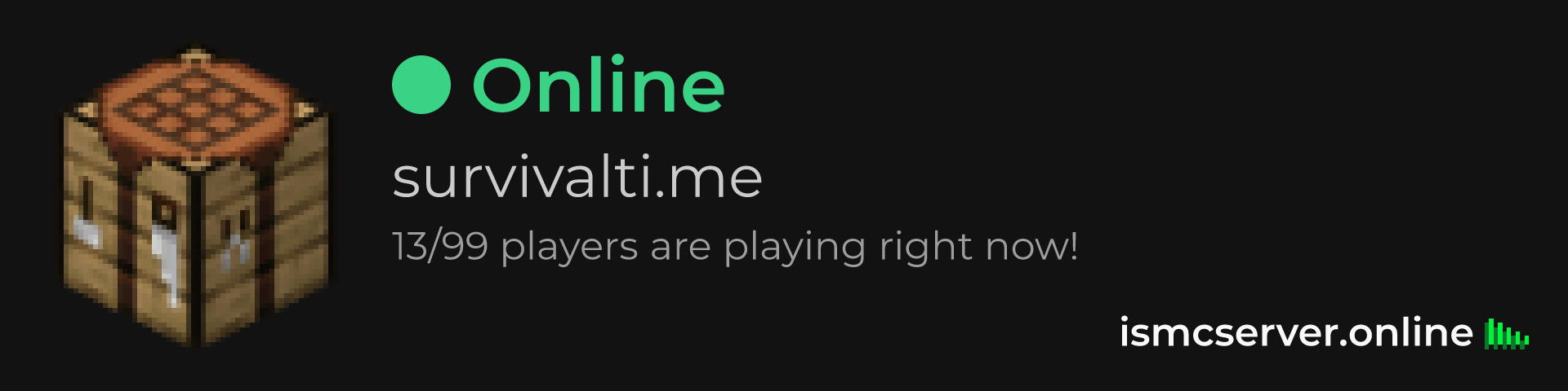 Dark Rounded image: https://ismcserver.online/survivalti.me/widget?dark&rounded