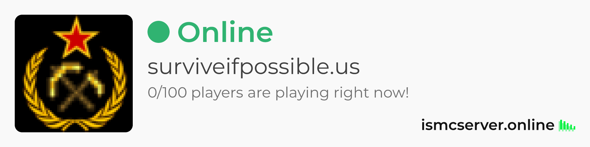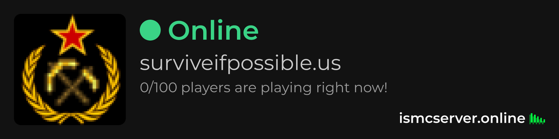 Dark Rounded image: https://ismcserver.online/surviveifpossible.us/widget?dark&rounded