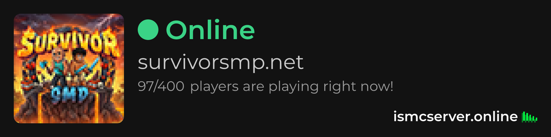 Dark Rounded image: https://ismcserver.online/survivorsmp.net/widget?dark&rounded