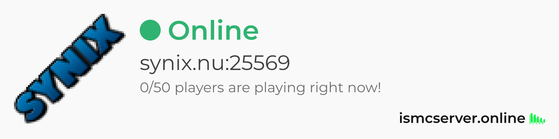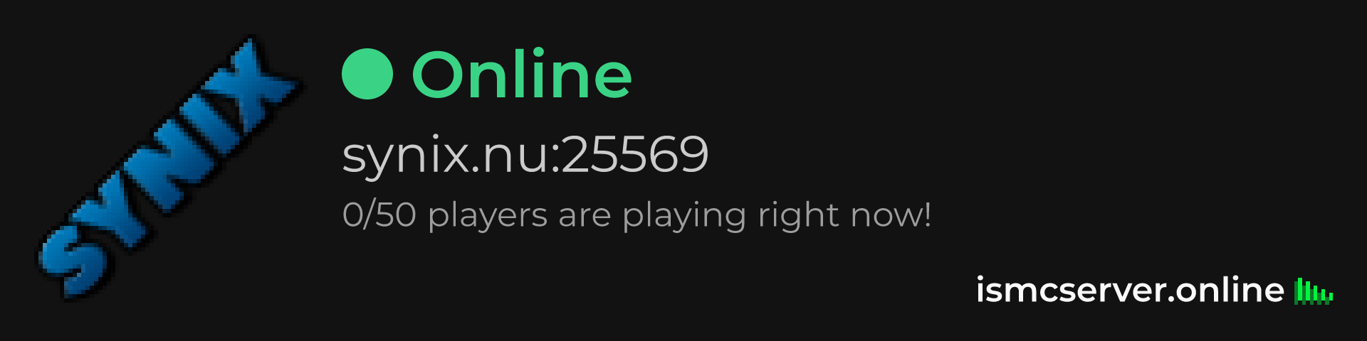Dark Rounded image: https://ismcserver.online/synix.nu:25569/widget?dark&rounded
