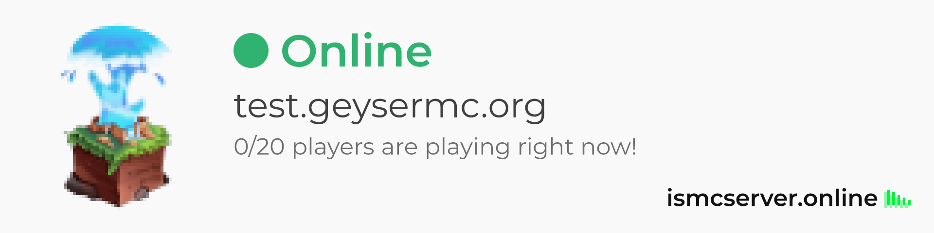 Dark theme: https://ismcserver.online/test.geysermc.org/widget?dark=true