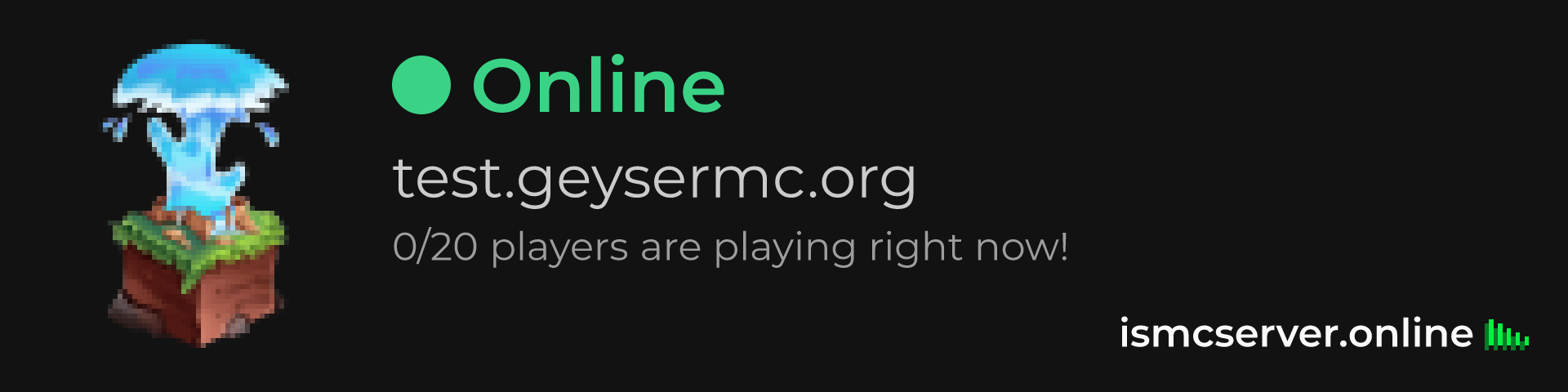Dark Rounded image: https://ismcserver.online/test.geysermc.org/widget?dark&rounded