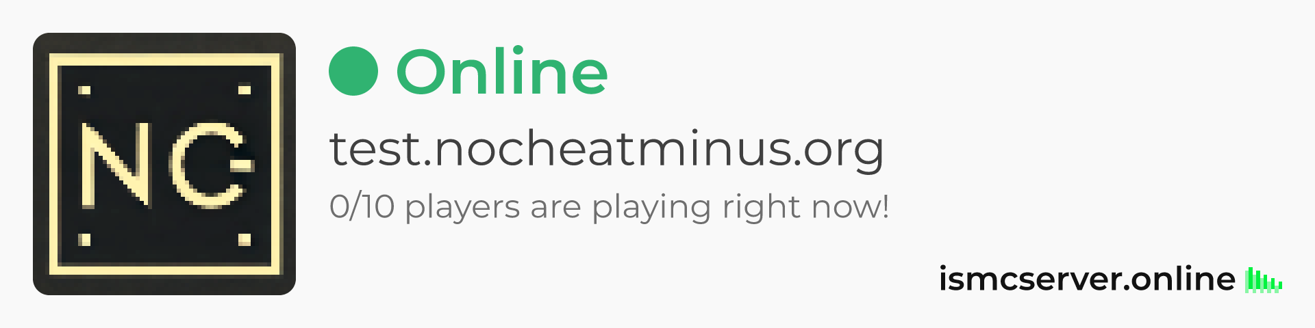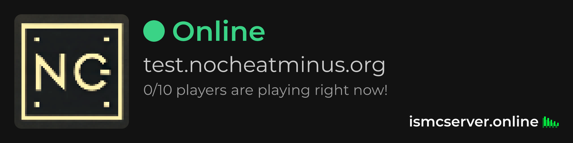 Dark Rounded image: https://ismcserver.online/test.nocheatminus.org/widget?dark&rounded