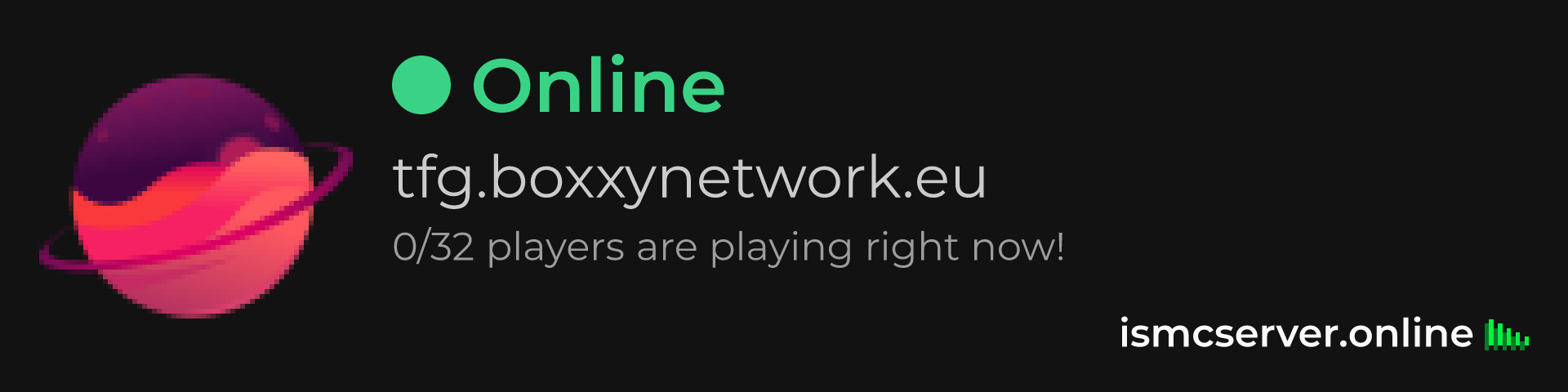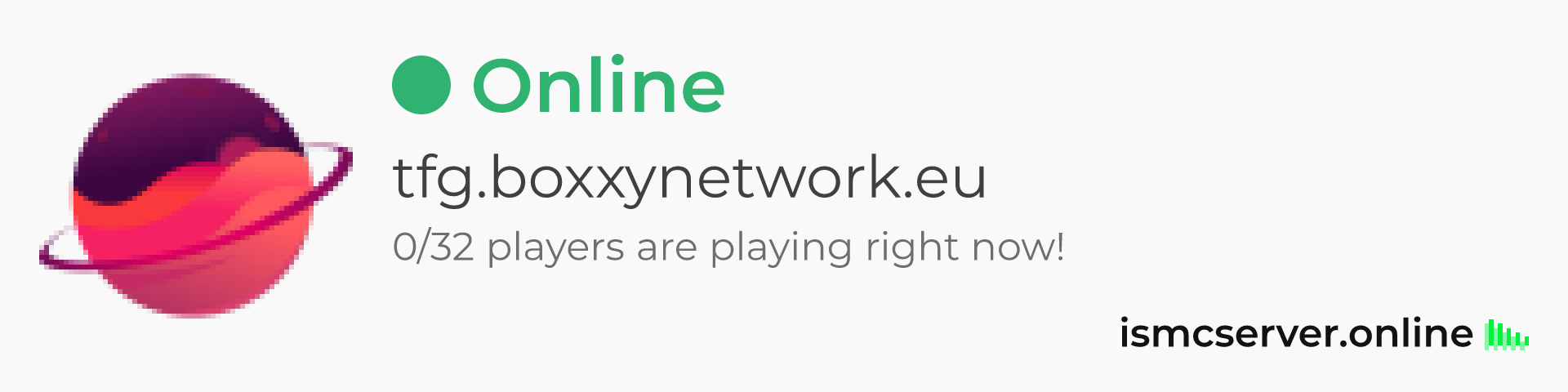 Dark theme: https://ismcserver.online/tfg.boxxynetwork.eu/widget?dark=true