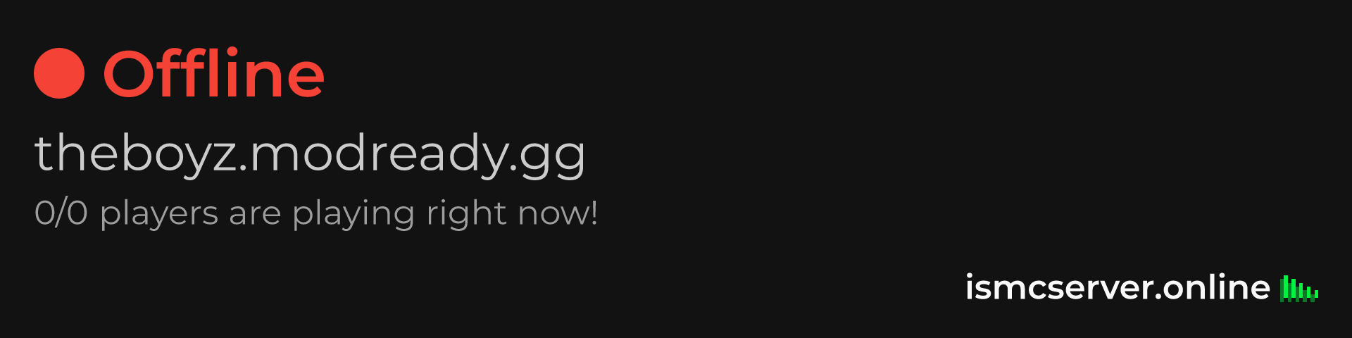 Dark Rounded image: https://ismcserver.online/theboyz.modready.gg/widget?dark&rounded