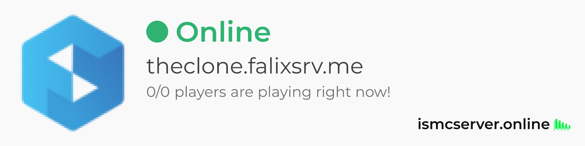 Dark theme: https://ismcserver.online/theclone.falixsrv.me/widget?dark=true