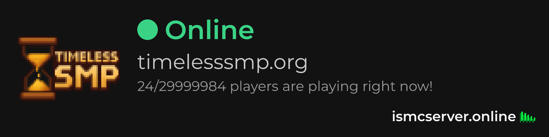 Dark Rounded image: https://ismcserver.online/timelesssmp.org/widget?dark&rounded