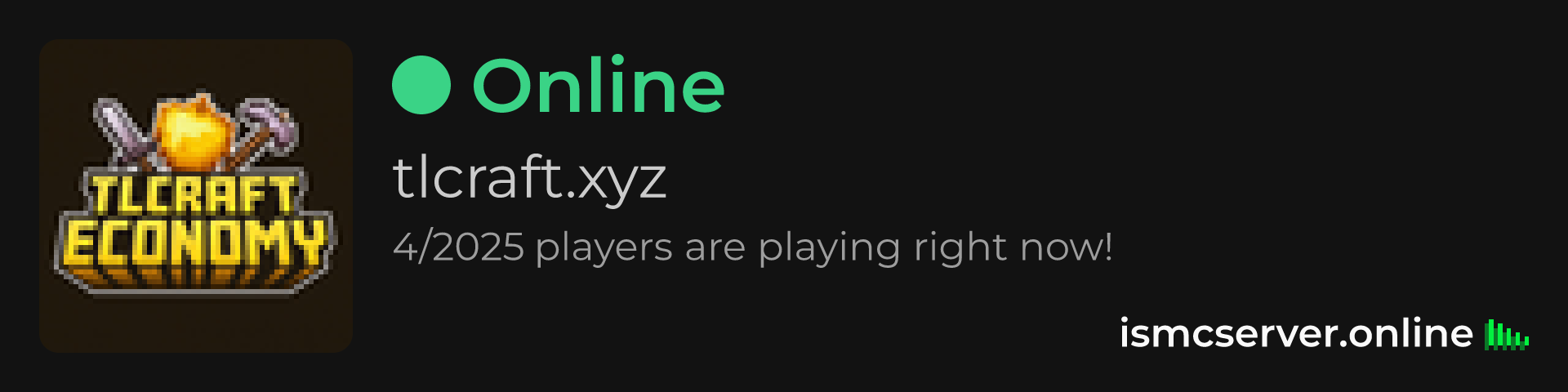 Dark Rounded image: https://ismcserver.online/tlcraft.xyz/widget?dark&rounded