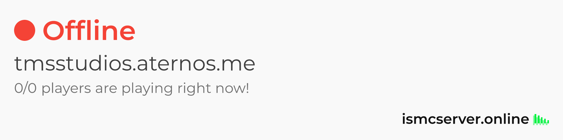 Dark Rounded image: https://ismcserver.online/tmsstudios.aternos.me/widget?dark&rounded