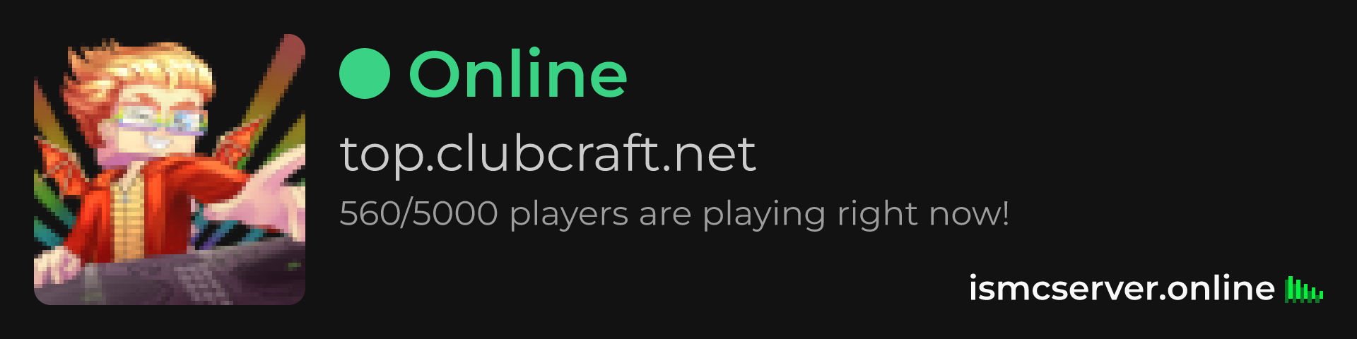 Dark Rounded image: https://ismcserver.online/top.clubcraft.net/widget?dark&rounded