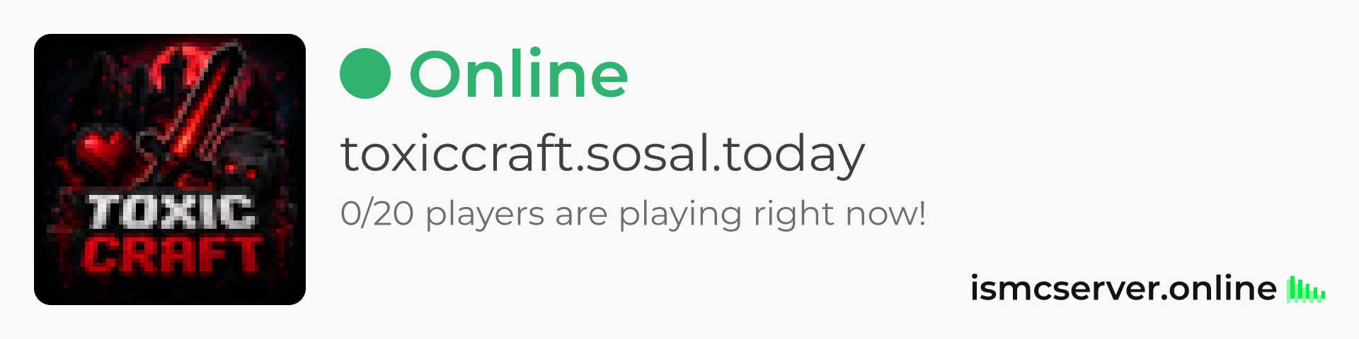 Dark theme: https://ismcserver.online/toxiccraft.sosal.today/widget?dark=true