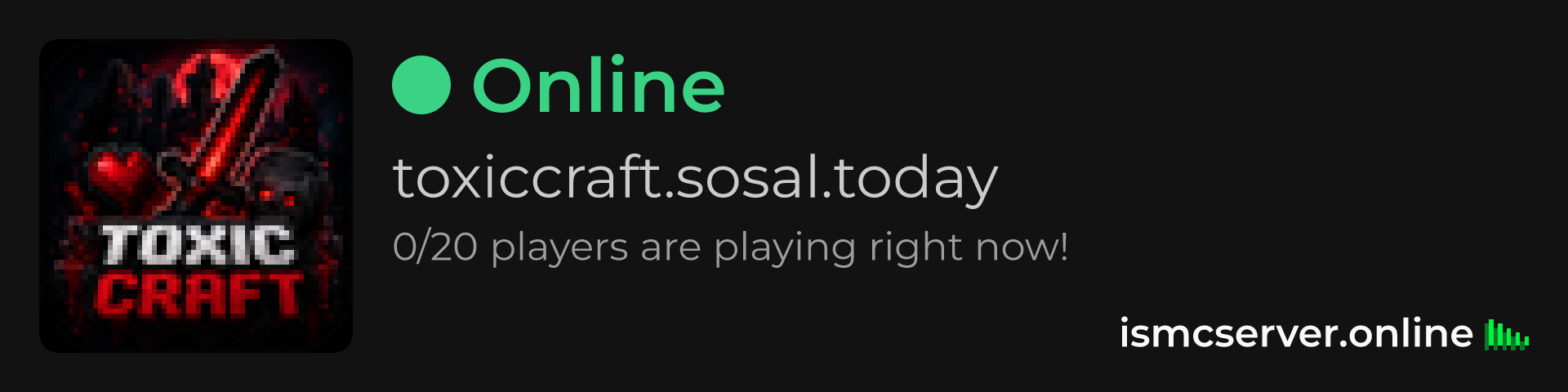 Dark Rounded image: https://ismcserver.online/toxiccraft.sosal.today/widget?dark&rounded