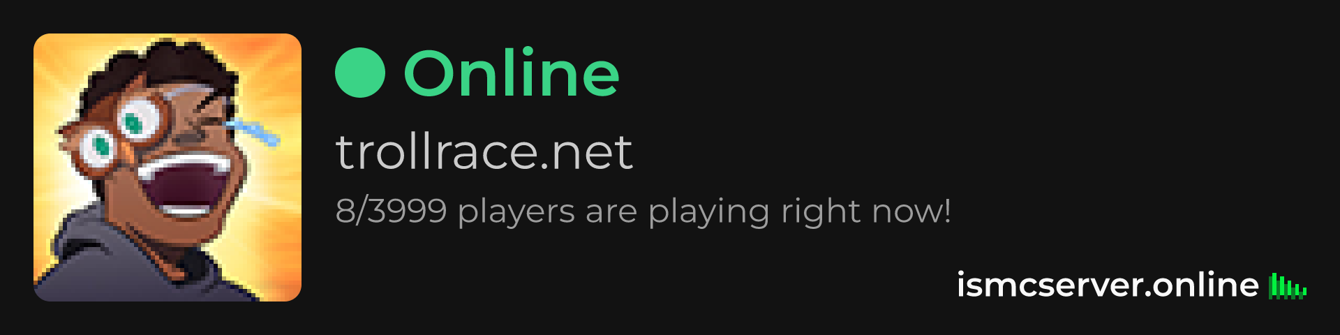 Dark Rounded image: https://ismcserver.online/trollrace.net/widget?dark&rounded