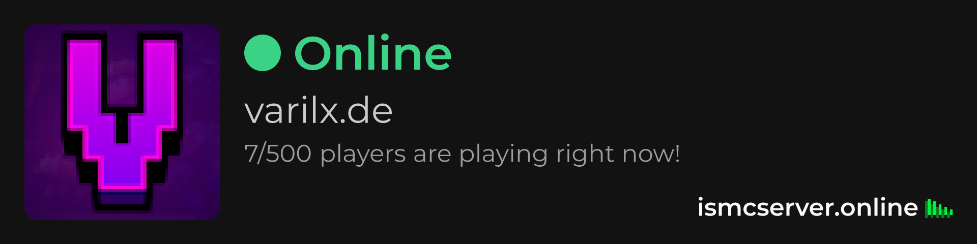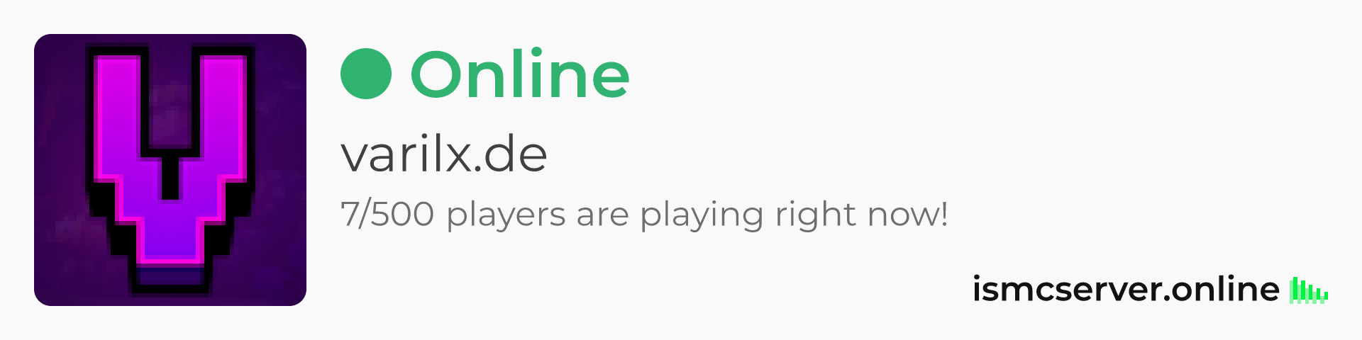 Dark theme: https://ismcserver.online/varilx.de/widget?dark=true
