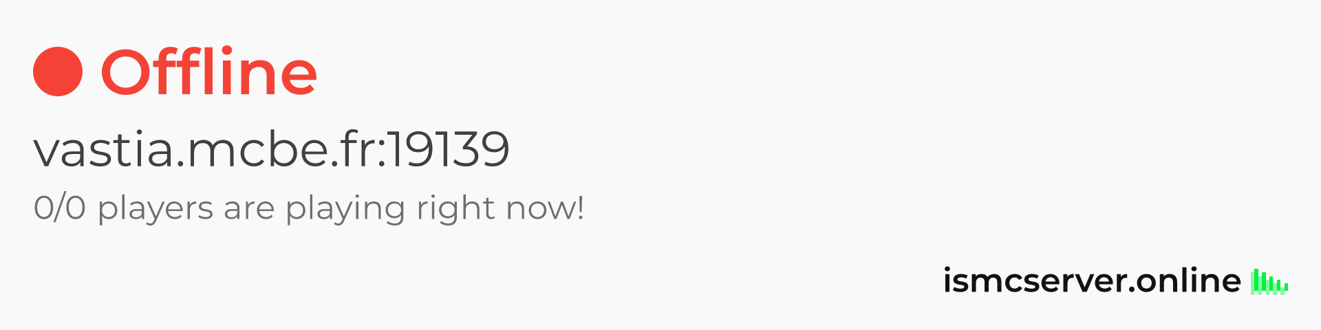 Dark theme: https://ismcserver.online/vastia.mcbe.fr:19139/widget?dark=true