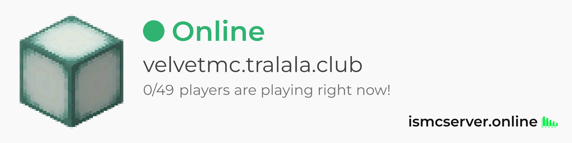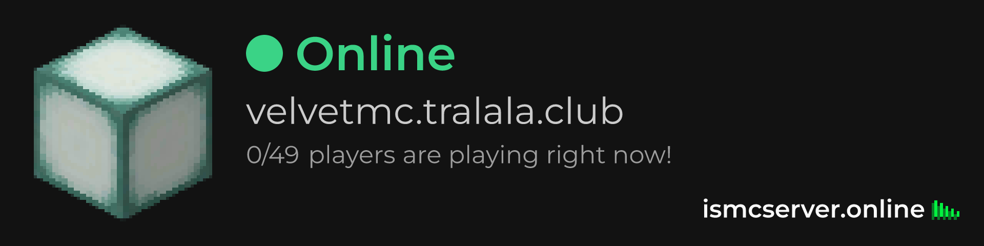 Dark Rounded image: https://ismcserver.online/velvetmc.tralala.club/widget?dark&rounded