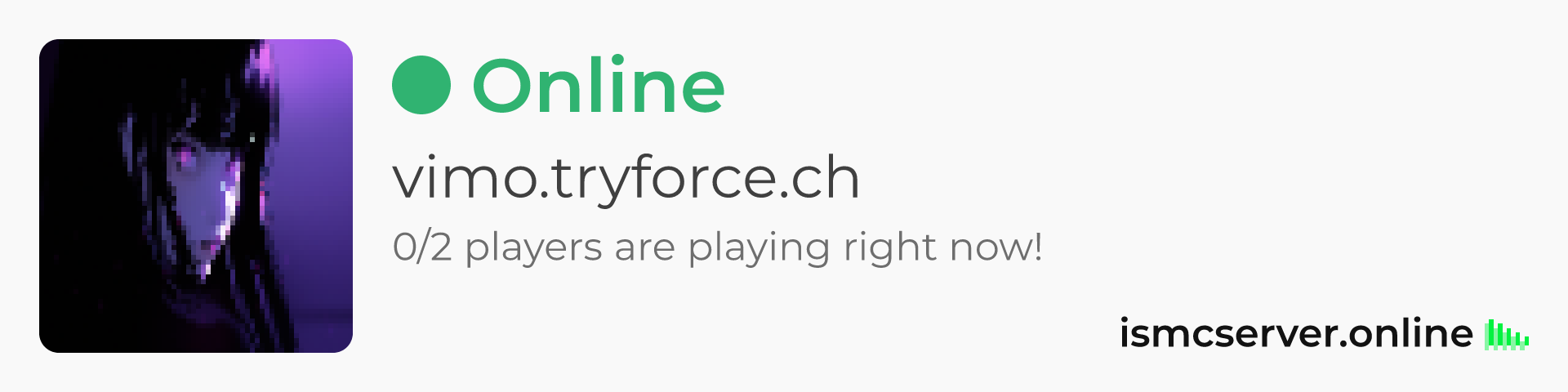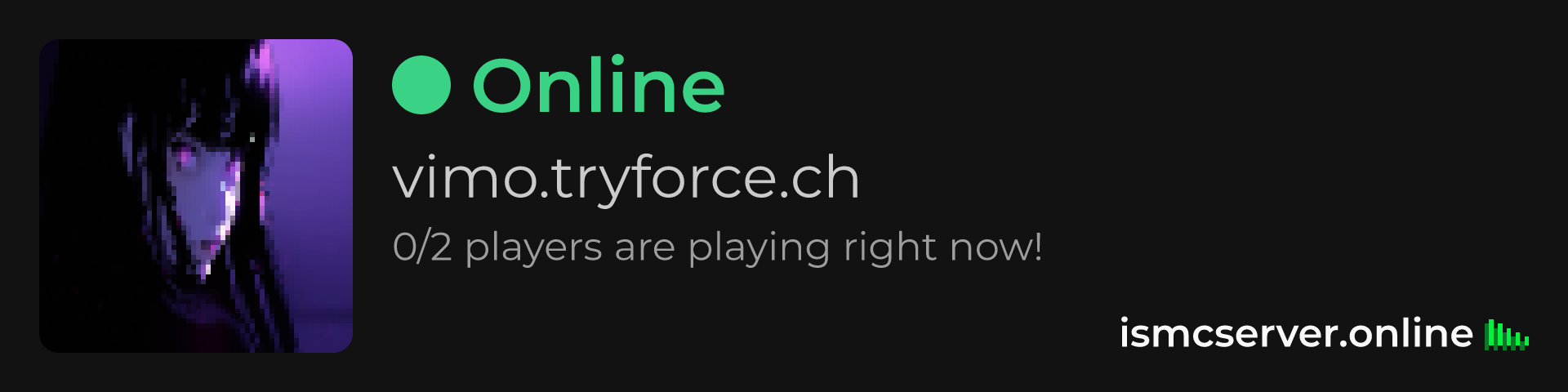 Dark Rounded image: https://ismcserver.online/vimo.tryforce.ch/widget?dark&rounded