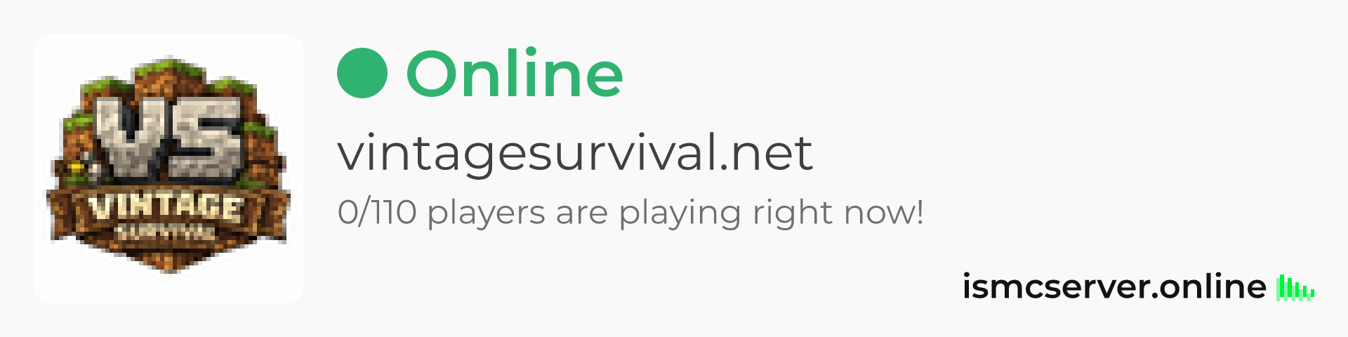 Dark Rounded image: https://ismcserver.online/vintagesurvival.net/widget?dark&rounded
