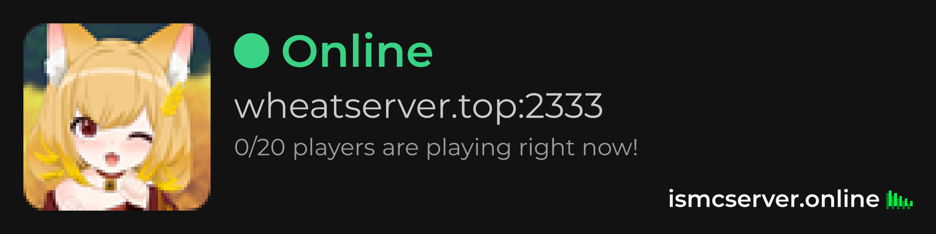 Dark Rounded image: https://ismcserver.online/wheatserver.top:2333/widget?dark&rounded