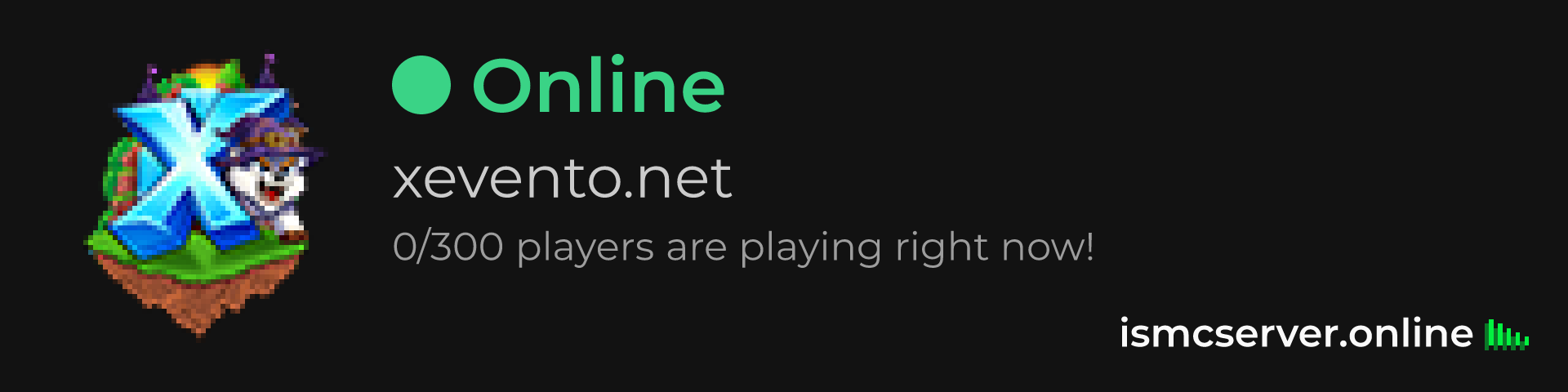 Dark Rounded image: https://ismcserver.online/xevento.net/widget?dark&rounded