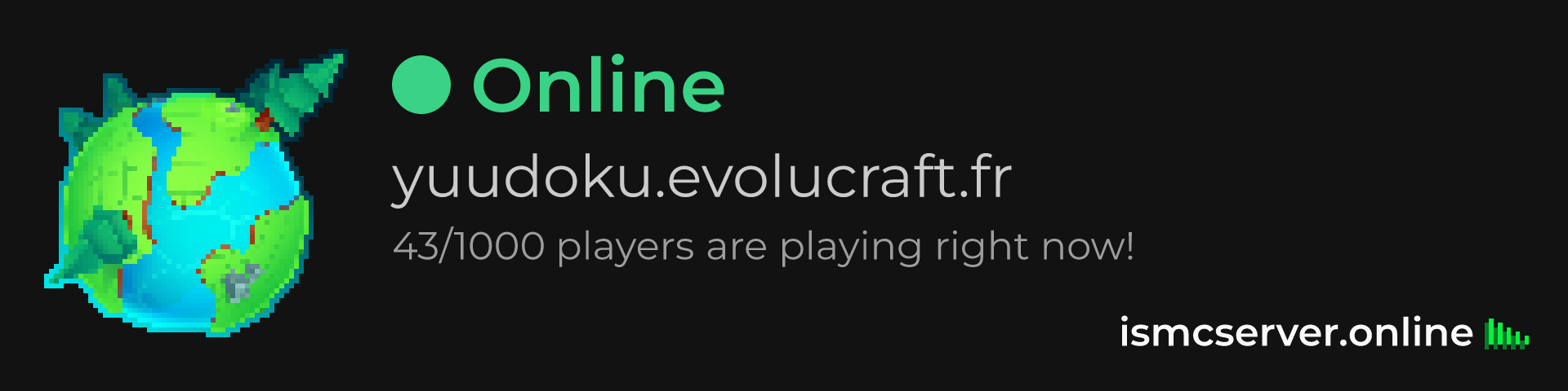 Dark Rounded image: https://ismcserver.online/yuudoku.evolucraft.fr/widget?dark&rounded